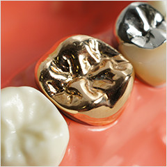 保険診療で使用する金属とは異なり、錆びたり溶け出したりすることがほとんどないため、歯や歯肉を変色させる心配が少なく、また歯の硬さに最も近いので噛み合う歯を痛めません。